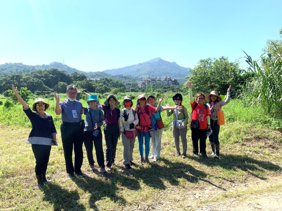 此地是今天走讀共學場域的重點之一,主要因協會有多位綠人老師,也是或曾擔任臺大農場的志工,迄今仍有份特殊的情感存在。尤其這裡曾因委外經營,廠商未能妥善處理,致荒廢閒置多年,近期在校方梁群健老師結合志工們的戮力付出整理下,重整雜亂無章的樣貌,期待能重現塗潭山下賞荷趣的美好願景。另外說起與梁老師的結識,其實是在本人受導遊職前訓練時,講授了兩小時的「臺灣常見植物介紹」課程,所以很開心能再次與老師相遇。當然除了我,也有眾多綠人老師們開心的相見歡,農墾植作雖然辛苦,卻超級快活。這裡的洛神花正值採收期,恰好應證「勤耕日下,晨起暮歸,身心皆安康」的這句題詞。綠人之所以為綠人,自然之所以為自然,意境於此。