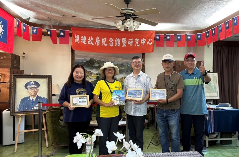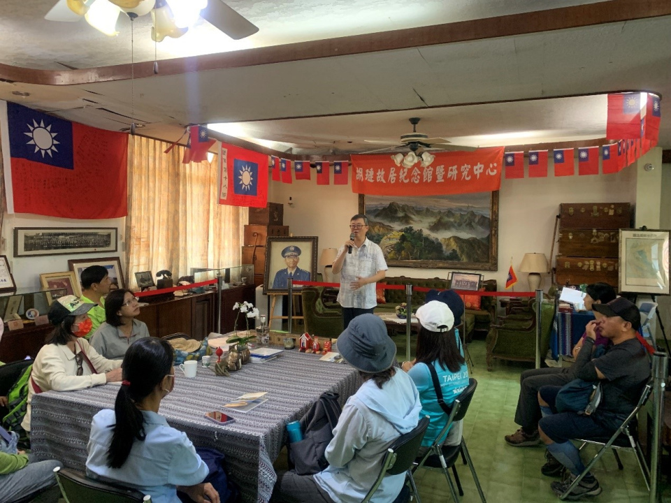 胡璉故居紀念館(新店區安康路一段195巷12號) 胡敏越先生以孫執輩講述胡璉將軍(爺爺)的生平事蹟 序平秘書長代表協會致送故居幹部紀念品表達感謝(阮筱雯攝)