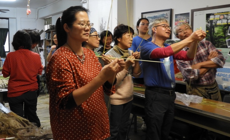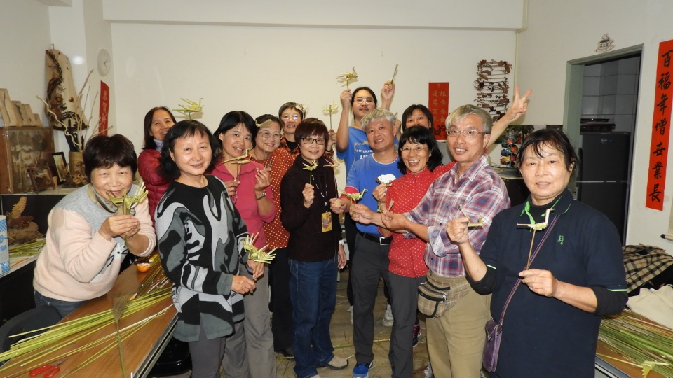 這次活動許老師指導的第一個作品「鳥」的編織較複雜,每一個步驟方位老師都非常詳細的說明,當然對首次手編的同學來說就是一個手忙腳亂來形容,排隊等著老師修正,老師也不厭其煩耐心的指導同學各式各樣的問題,大家第一次的作品各有千秋,每個人還是很認真地完成作品,雖然作品有肥鳥、落翅鳥、發育不全鳥...,但大家都很開心。第二個作品「關刀」比較簡單,所以同學都較上手了,作品很快就完成,每個人人手一把虎虎生威,非常有成就感。