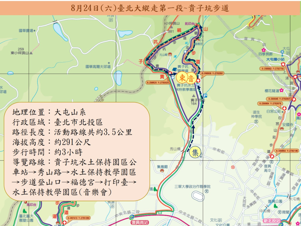 2.步道音樂會會場及解散點:貴子坑水土保持教學園區。