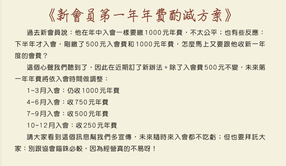 - 常年會費: