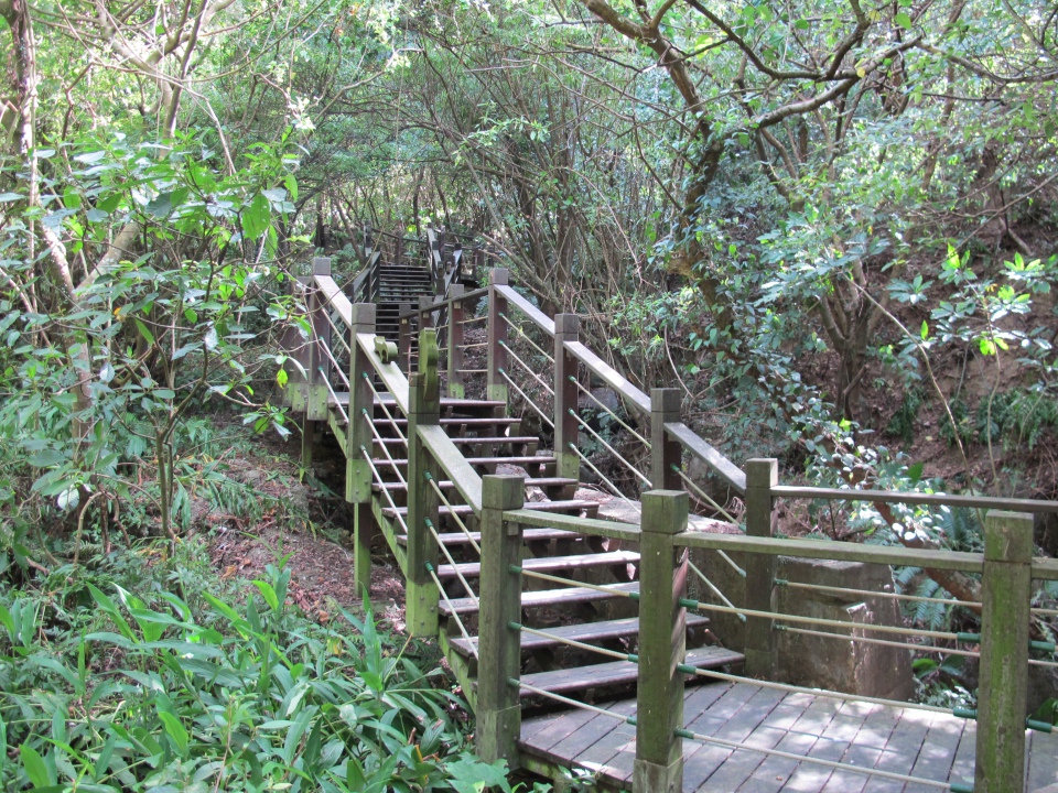 從指南國小沿著步道拾級而上,沿路盡是小區域茶園及零星的竹林,左邊是低斜的山坡,右邊的次生林則有不少相思樹,樹冠順著斜坡方向延展生長,步道彷彿有著綠屋頂,強風吹過,請駐足聆聽,你將會聽見大樹的呼喚,請坐在石階上,靠近相思樹,當聽見像蟲兒的鳴叫聲請勿懷疑,是相思樹在喃喃訴說著它曾經被人大量栽種及如何護衛礦坑裡出生入死的礦工…等故事。