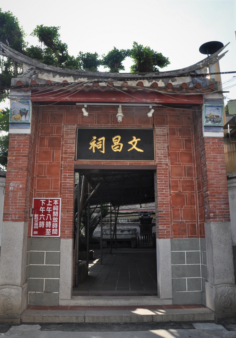 新莊文昌祠(市定古蹟):主祀文昌帝君,原本供奉在慈祐宮的右後方,光緒元年(1875年),因增設義私塾,以教育培育地方人才,舊址空間不足而遷建於現址。前埕右側有一座水泥磚砌的傳統敬字亭,頗有古味。門柱亦無楹聯,表示不敢在文昌君前賣弄文章。廟內正廳懸掛的古匾「世範儀著」,是道光4年(1824)新莊縣丞詹英所題。