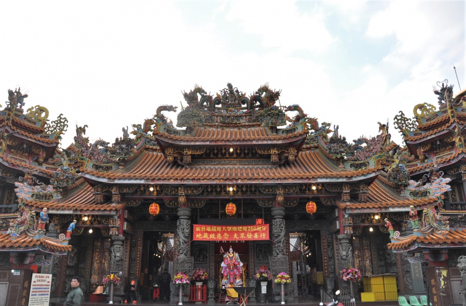 新莊廣福宮(二級古蹟):廣福宮創建於清朝乾隆45年(1780年),祀奉三山國王(指的是廣東境內的巾山、明山、獨山這三座山峰的神靈),這一信仰隨著粵籍移民來台而傳入台灣。廣福宮並不是新莊最古老的寺廟,卻是新莊唯一的國家二級古蹟,是老街四大古廟保存最完整的一座古廟。