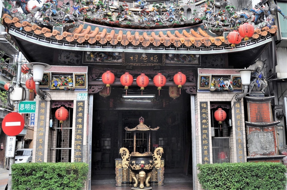 新莊福德祠:新莊福德祠建於乾隆46年(西元1781年),規模雖然不大,但陳設規劃卻一點都不馬虎。福德祠的廟門,朝著大漢溪水流的方向,以表示聚財之意。這與視掌管社稷、庇佑五穀豐收的土地公為財神,有很大的關係。祠內供奉著土地公、土地婆,精緻的神龕表現出住民對土地公最高的敬意,供桌上一對木雕『憨蕃扛燭台』神態逼真逗趣,至於牆堵上的交趾陶,則更是新莊廟宇裝飾中,首屈一指的文化財。