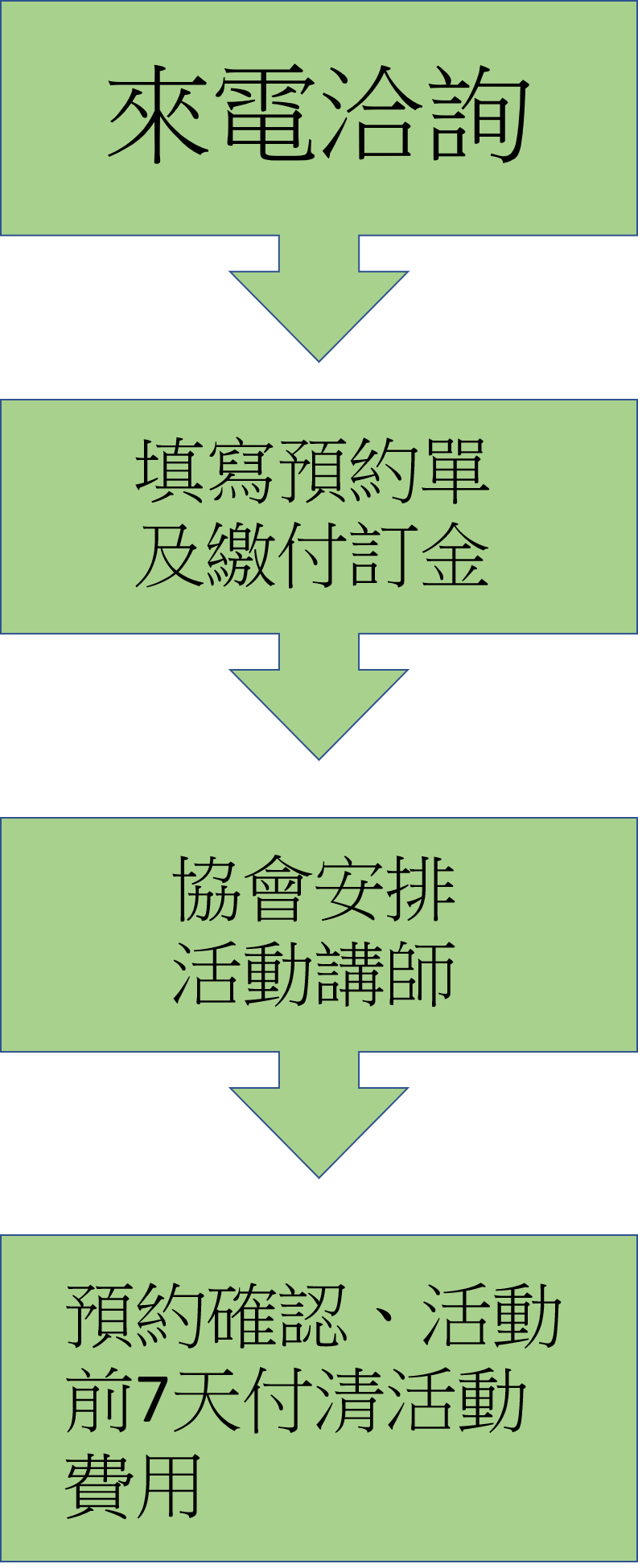 活動1週前繳付其餘活動費用