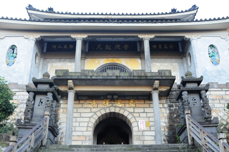 | 地理位置 圓通寺地處中和市郊山腰,背倚山脈、側憑兩峰,遠眺五股 觀音山,俯瞰新店溪畔平疇沃野。 |